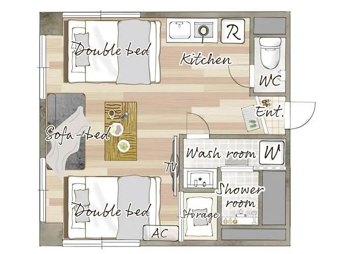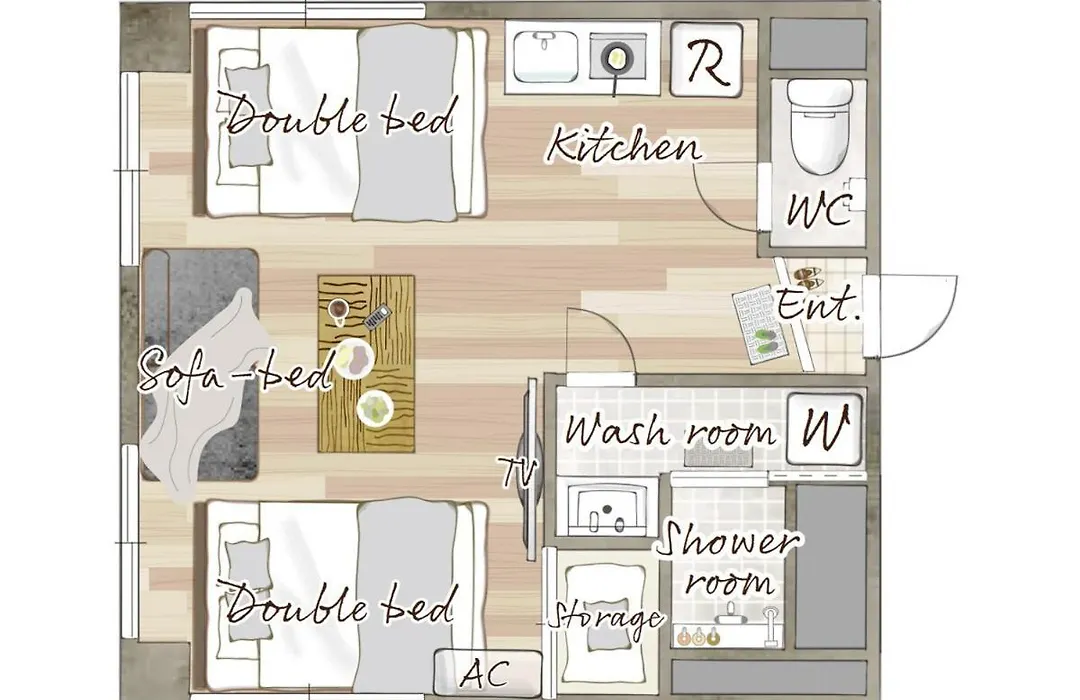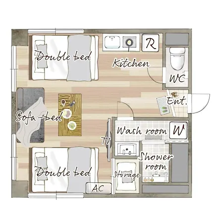 There is a mini-kitchen provided. Shitaya-Jinja-Mae bus stop is about 5 minutes' walk away, and Inaricho underground station lies approximately 5 minutes away by car.